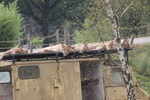 2015Leeuwen op het dak van een auto